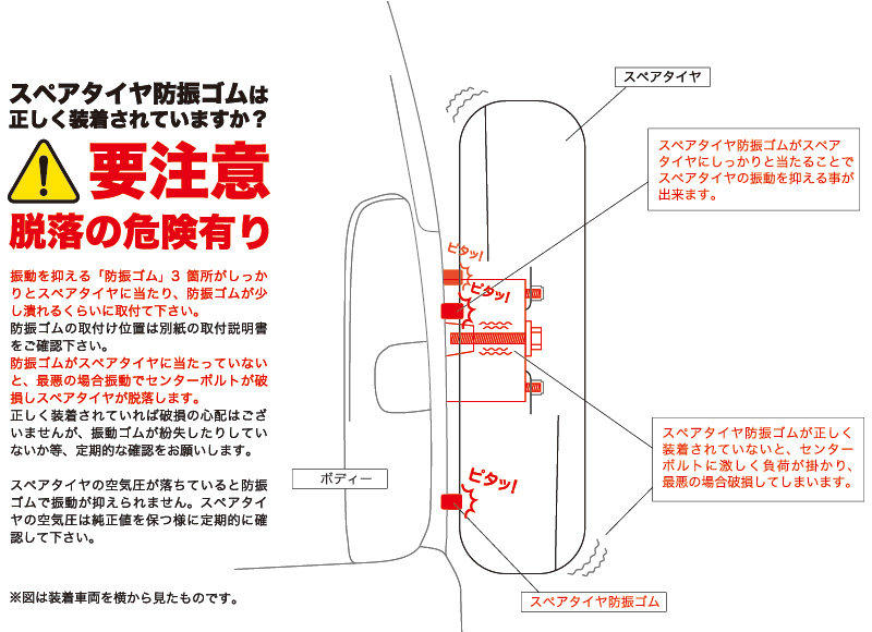 スペアタイヤの防振ゴムは正しく装着されていますか?