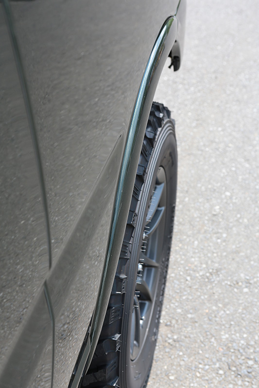 タクティカルフロントバンパーガーニッシュのデザインがお気に入りというオーナーさんのTS7が納車です。タイヤにはヨコハマジオランダーWILDTRACTION195R16をチョイス。それに合わせ9mmオーバーフェンダーを追加装着いただいております。