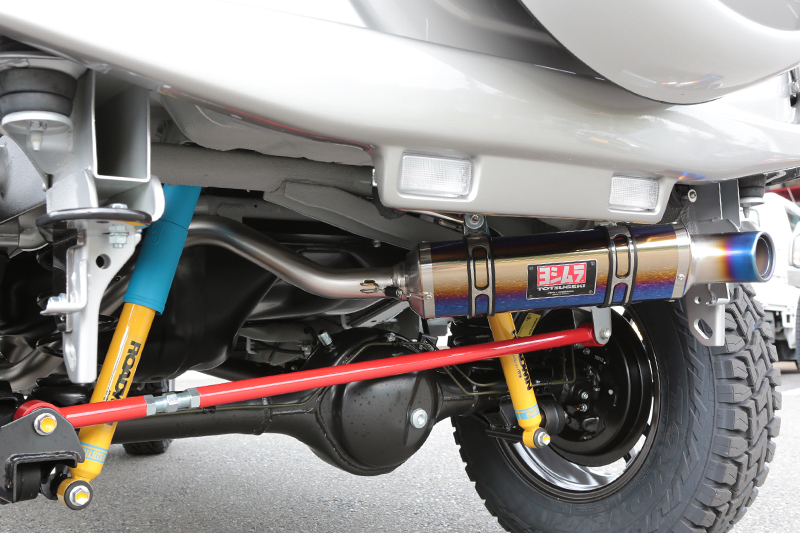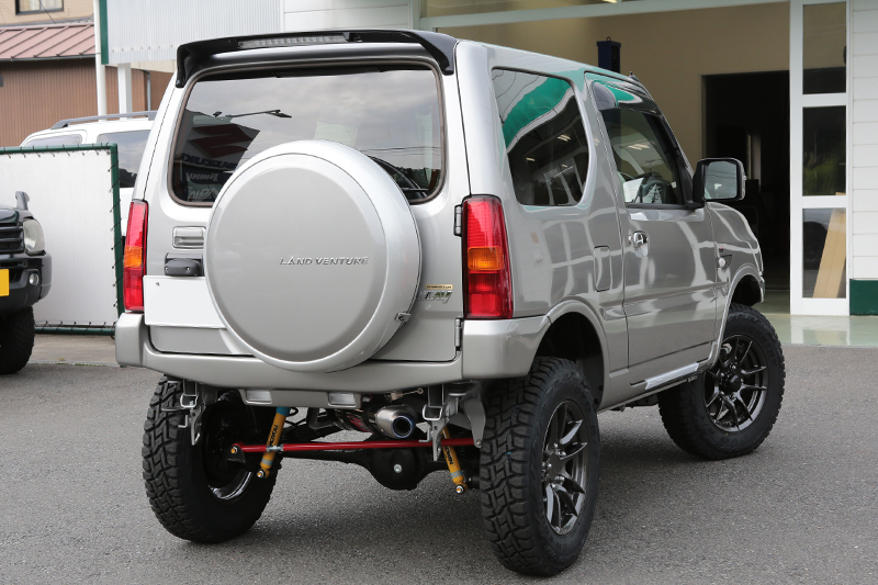オーナーさんのお気に入りポイントはビルシュタインのショックアブソーバーとヨシムラチタンマフラー。更にリアスポイラー追加、ホイールはWILDBOAR Zに変更いただきとてもスポーティーなJB23に仕上がっております。