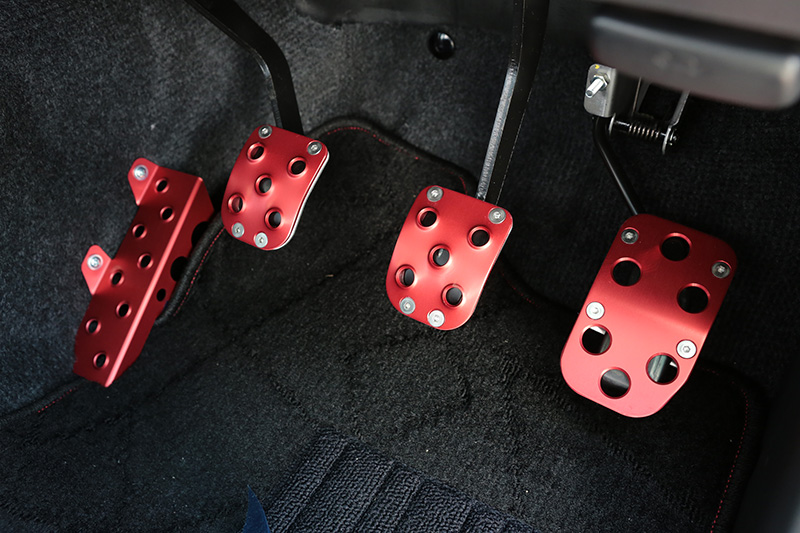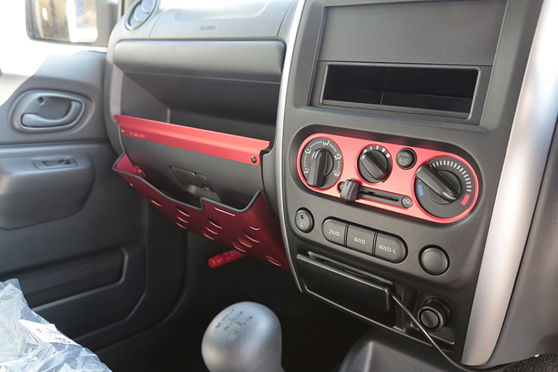 追加装着いただいたインテリアのアイテムは拘りの赤で統一。ラリーマップボックスには限定生産品のレッドアルマイトを装着いただきました。