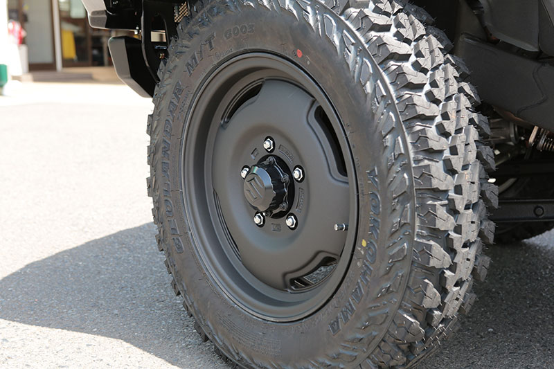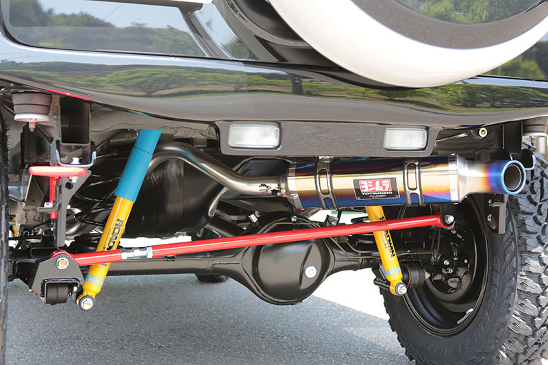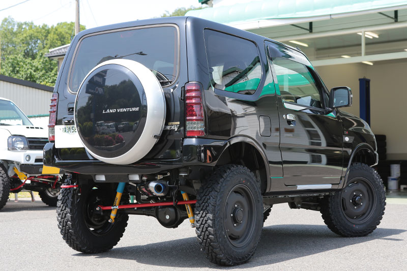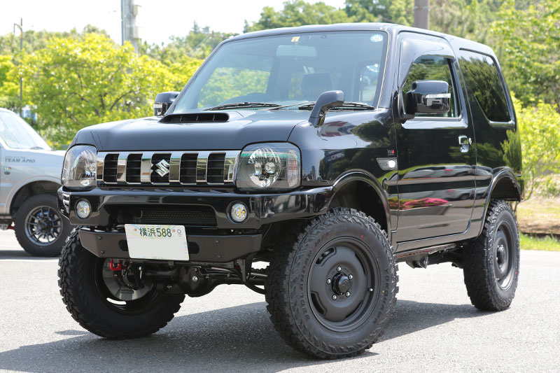 ブラックのボディーとブラックのSRホイールの組み合わせがお洒落な1台が完成です。オーナーさんの拘りは追加装着いただいたアピオxヨシムラマフラー。 この度はアピオジムニーコンプリートかーをお選びいただき誠にありがとうございます!