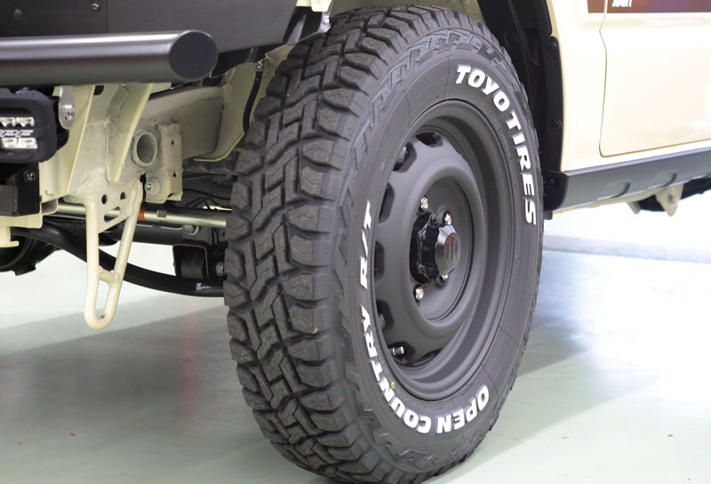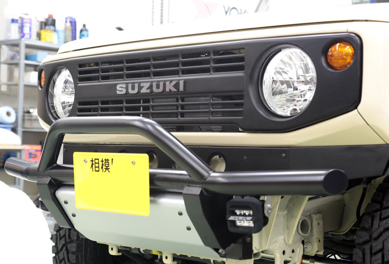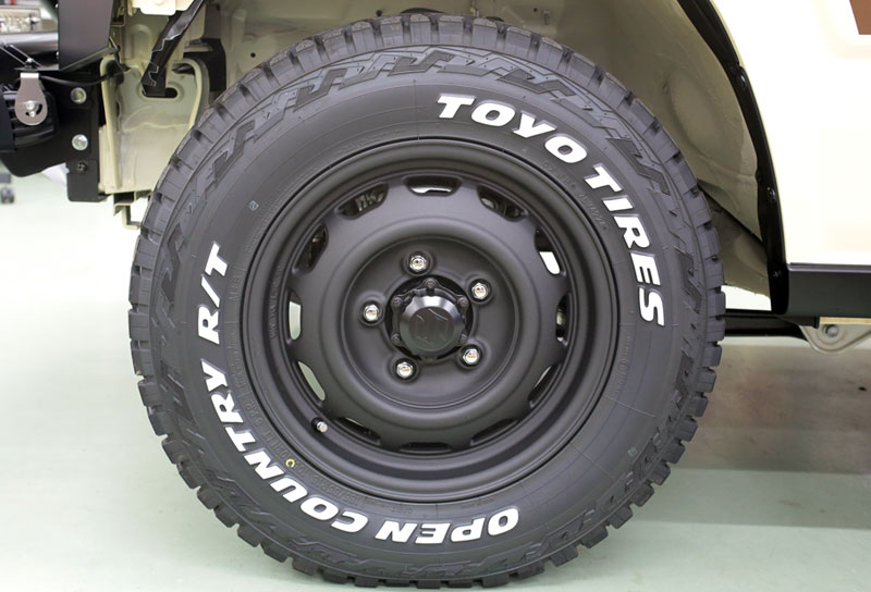 オープンカントリーのタイヤとベンチュラホイール、前後バンパー、静香御前マフラーを装着されて武骨さを感じさせながらもサイドデカールとアイアングリルで親しみやすさと可愛さを醸し出すことに大成功されました。きっとどこに行っても注目を集めることでしょうね。