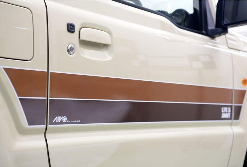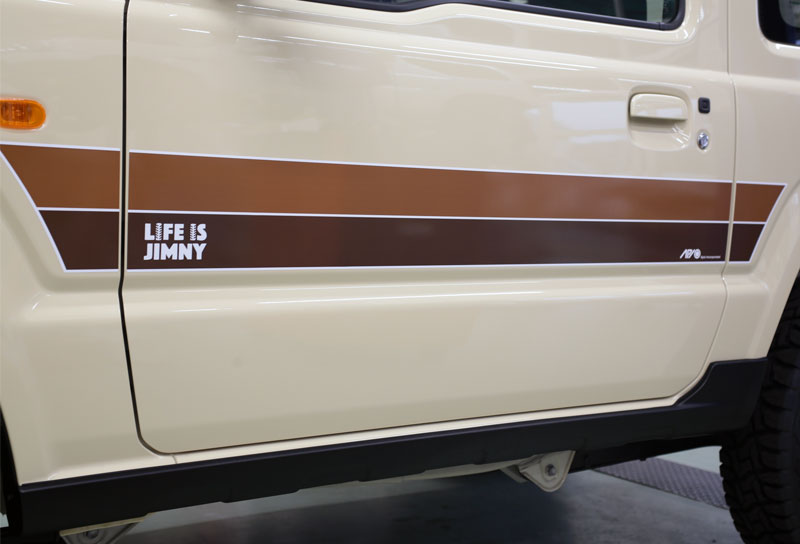 結婚記念日に妻へジムニーをプレゼントする旦那さんのジムニーはあえてのコンプリートパッケージでなく、アピオパーツをご自身でセレクトされて世界に一台のジムニーにお仕上げくださいました。