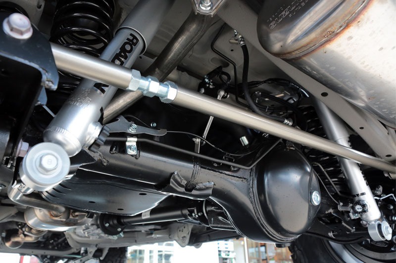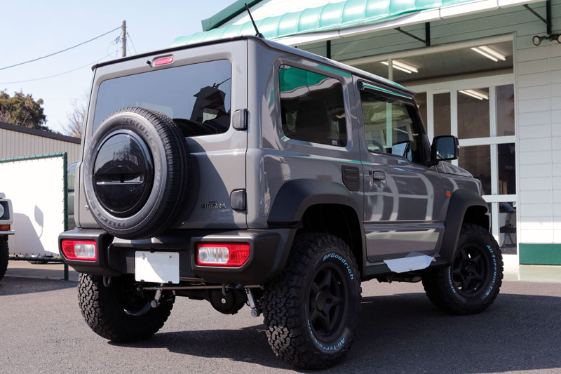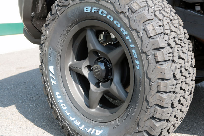 40mmアップサスペンションと235幅のタイヤがミディアムグレーのボディと相まって全体から凄みのようなものが感じられます。