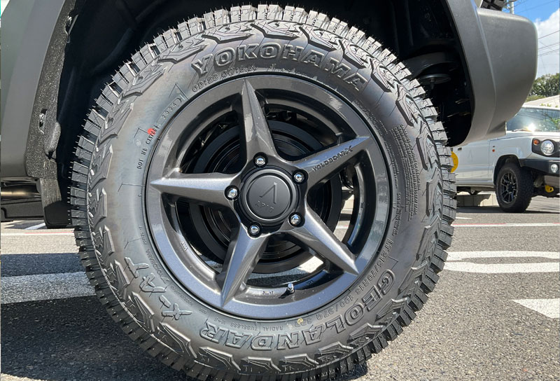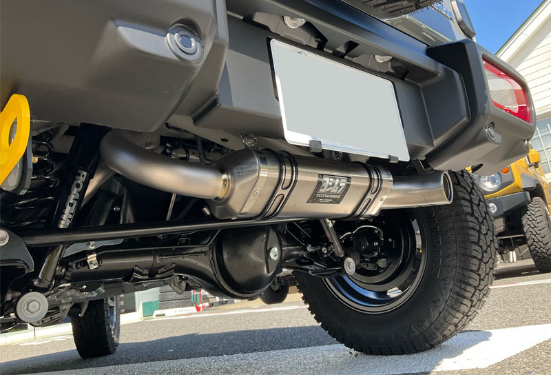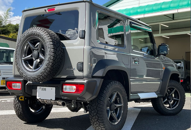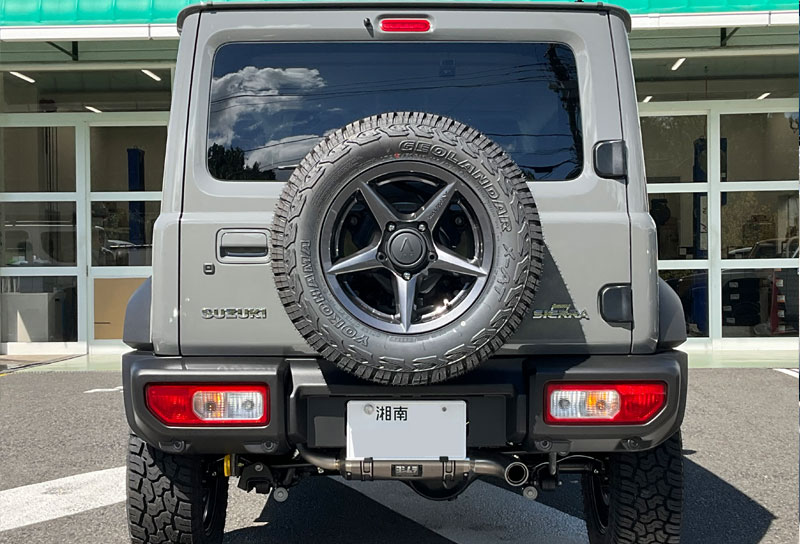 TAMAさんは以前にもJB23にお乗りで、今回はジムニーシエラをご選択いただきました。コンプリートパッケージはTS3仕様なのでバンパーは純正バンパーとなりますが、タイヤホイールグリル等、外から見える場所はもちろん、サスペンションもROADWIN7420サスペンションキットが組み込まれております。また、マフラーはヨシムラチタンサイクロンマフラーを装備し、押さえるところをばっちり抑えた通好みな仕様となっております。