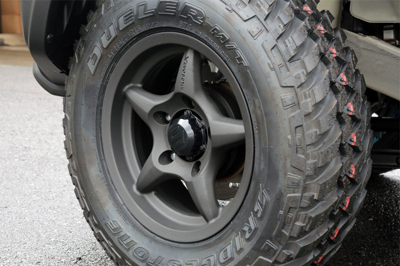 タイヤはブリジストンのデューラーMT674 215/75R15サイズをスペアタイヤを含め計5本装着させていただきました。
