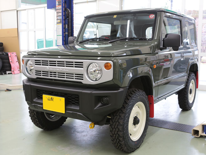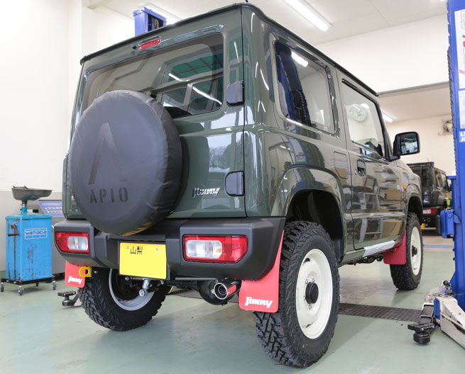 山梨県にお住まいのあきもさんにJB64XGグレード5MT車をベースにアピオジムニーコンプリートカーTS3仕様としてお納めさせていただきました。