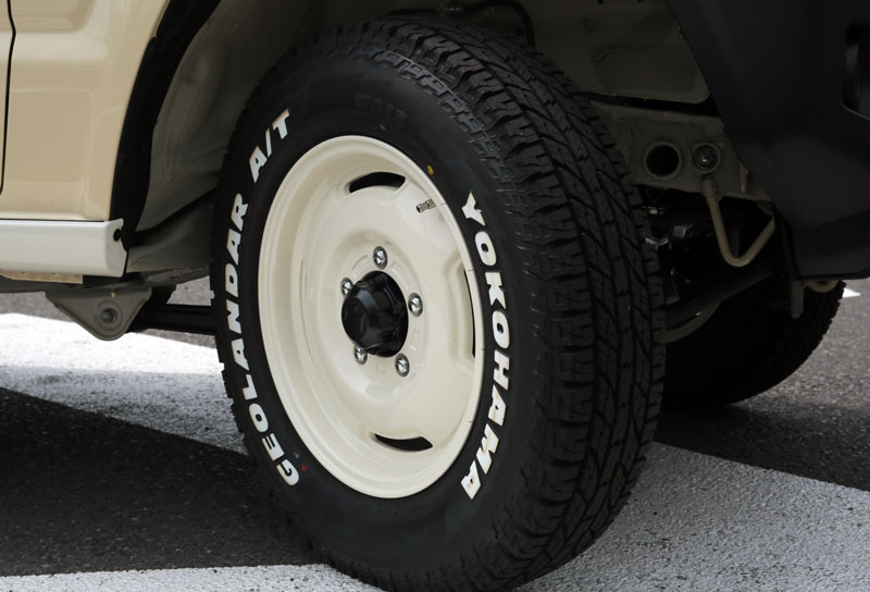 トトロのともだちさんのジムニーはルーフ&リアクオーター部、サイドシルガーニッシュもコットンホワイト仕上げとさせていただきました。