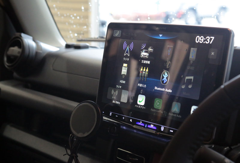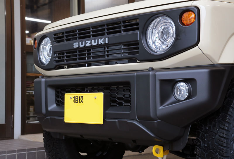 Noriさんのジムニーはお洒落2ト-ンルーフのXCグレードをベースに黒のアイアングリルをご選択。