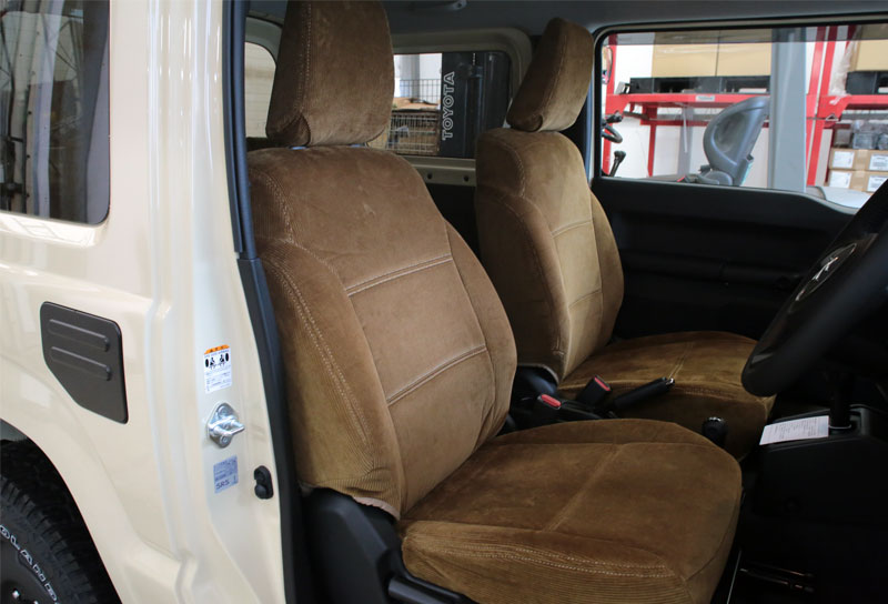 コーデュロイのシートカバーも装着させていただき”新しさと懐かしさ”が同居する絶妙なバランスに仕上がりました。