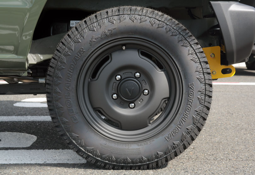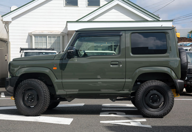 Y.KさんのジムニーはジャングルグリーンののボディカラーにワイルドボアSR16inch&「ヨコハマタイヤ ジオランダーX-AT 195R16C」を装備し、オンロードとオフロードのバランス、そしてデザインが「丁度良い」ところでまとまっております。今後のカスタムのベースとして、はたまたそのまま乗っても良しのTS3スタイルとなっており、通好みの一台に仕上がり