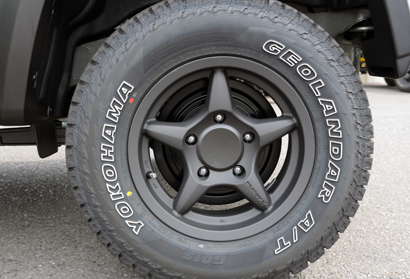 ツッチーさんのシエラはグリーンのボディカラーにジオランダーATのホワイトレターが良く映える仕上がりとさせていただきました。