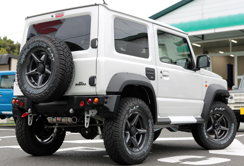 田村さんのシエラは凛としたパールホワイトのボディカラーに16インチの大径&ワイドな225サイズのジオランダーX-ATとX2ホイールの組み合わせがとても逞しい外観の仕上がりです。それ以外でも田村さんのコダワリがたっぷり詰まった田村さん渾身の一台となりました。