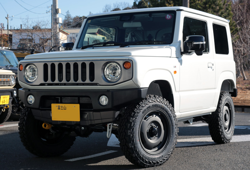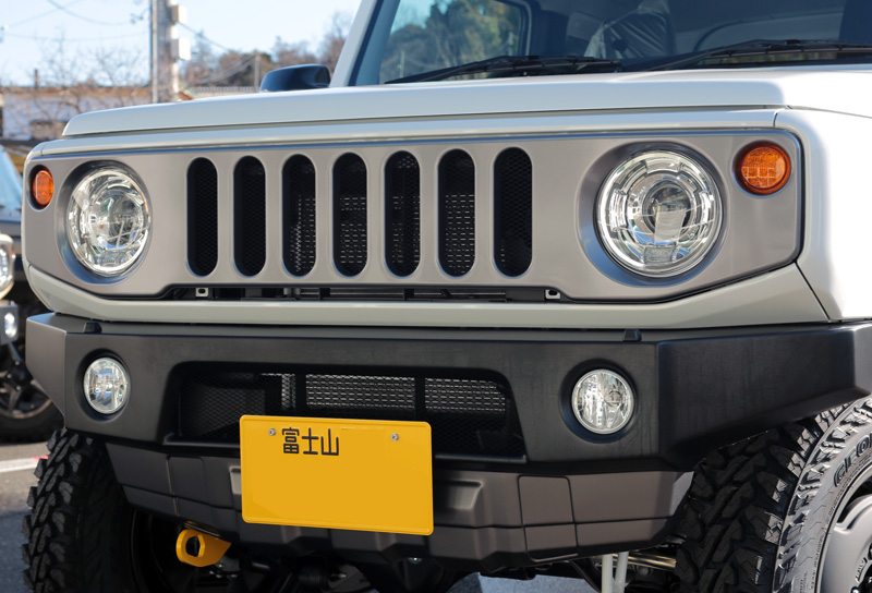 大塚さんのジムニーはホワイトのボディカラーにガンメタのSJグリルを装着させていただきました。