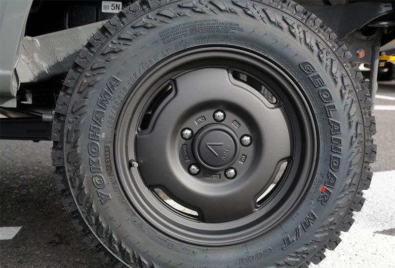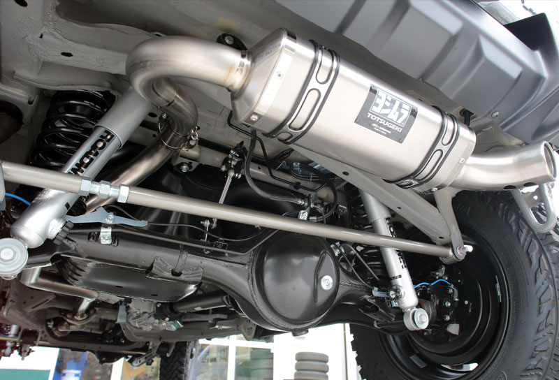 岡﨑さんのジムニーはミディアムグレーのTS4にこれまたグレーのヨシムラチタンサイクロンマフラーを装着させていただきました。
