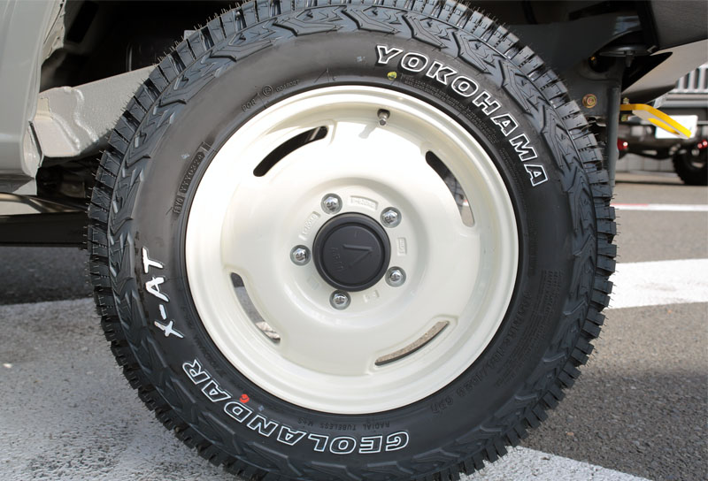 益川淳一さんのジムニーはをTS4コンプリート車のJB64にワイルドボアSRホイール コットンホワイトとジオランダーX-AT195R16タイヤのホワイトレターに装着した爽やかさとカッコよさが相まった絶妙な