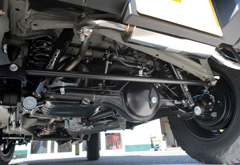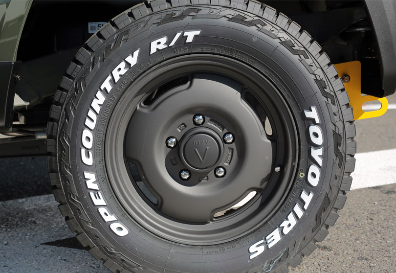 佐藤さんのジムニーは、人気のジャングルグリーンの車体色に、オープンカントリーRTホワイトレターを採用し、落ち着きとさりげない華やかさを兼ね備えた一台となっております。