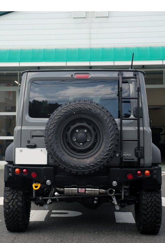 後部にはリアラダーとヨシムラステンレスマフラーを組み合わせてとてもワイルドな雰囲気に仕上がっております。