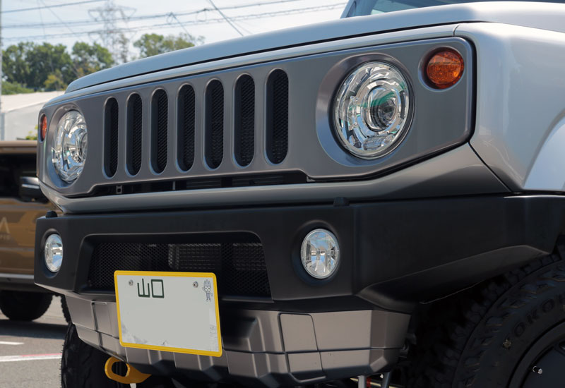 H.Oさんのジムニーはシルバーのボディカラーをベースにブラックやガンメタのパーツを各部に効果的に配したことによりとても精悍なイメージに仕上がっております。