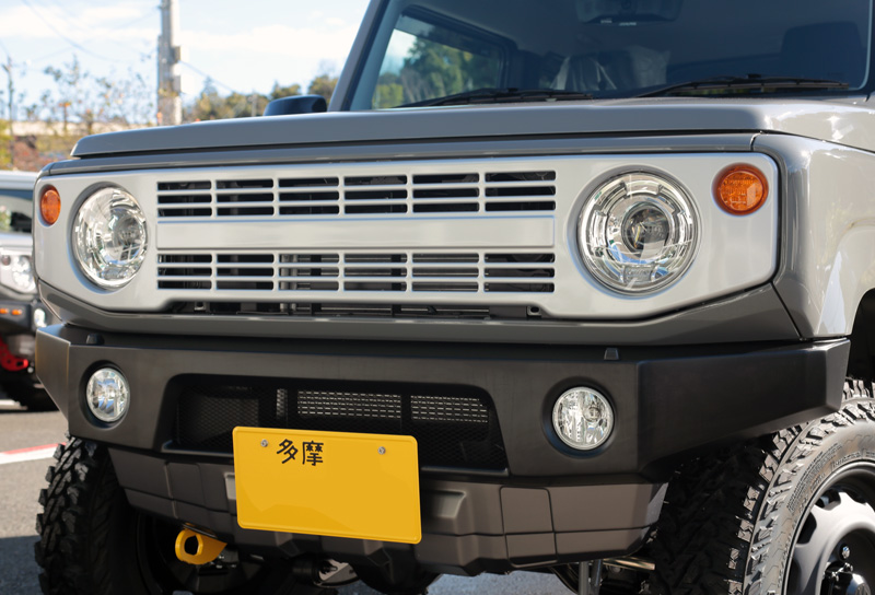 K・Hさんのジムニーはグレーのボディカラーにシルバーのアイアングリルを組み合わせた個性的なスタイリングが特徴です。