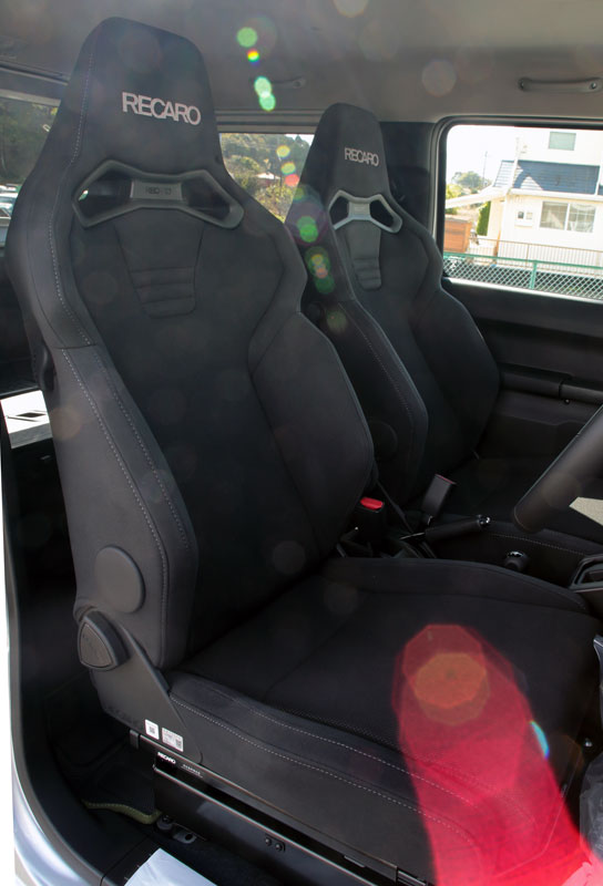 シートもレカロの最新型・SR-CのBK100Hを運転席と助手席の2脚装着。