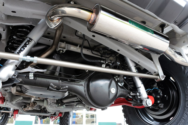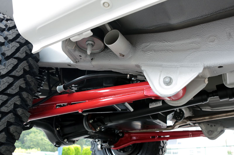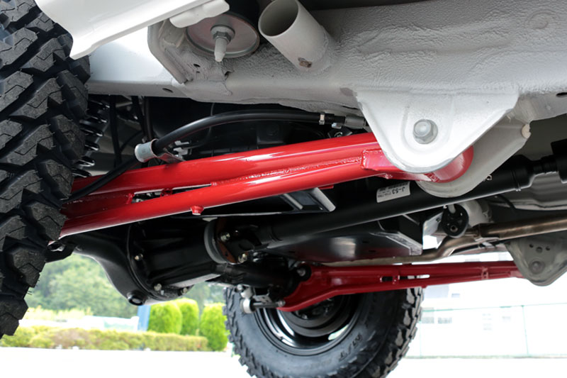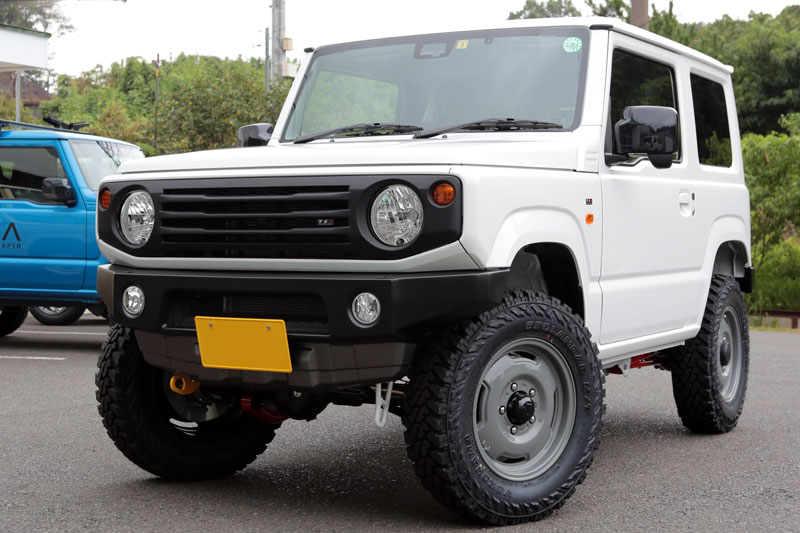 XLグレードでソリッドホワイトボディカラーにJB23用レッドアーム、そしてグレーのSRホイール、205R16タイヤを組み合わせたそのシンプルな姿はアピオの理念を具現化したかのような仕上がりです。