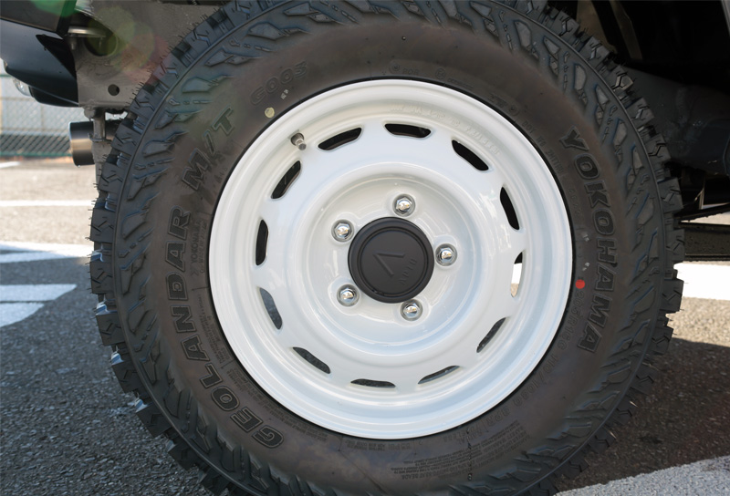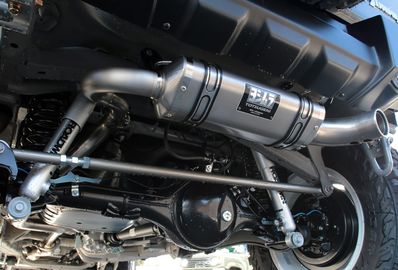 グレーチタンのヨシムラマフラーと205サイズのジオランダーMTタイヤでどの角度から見ても死角のない仕上がりですね。