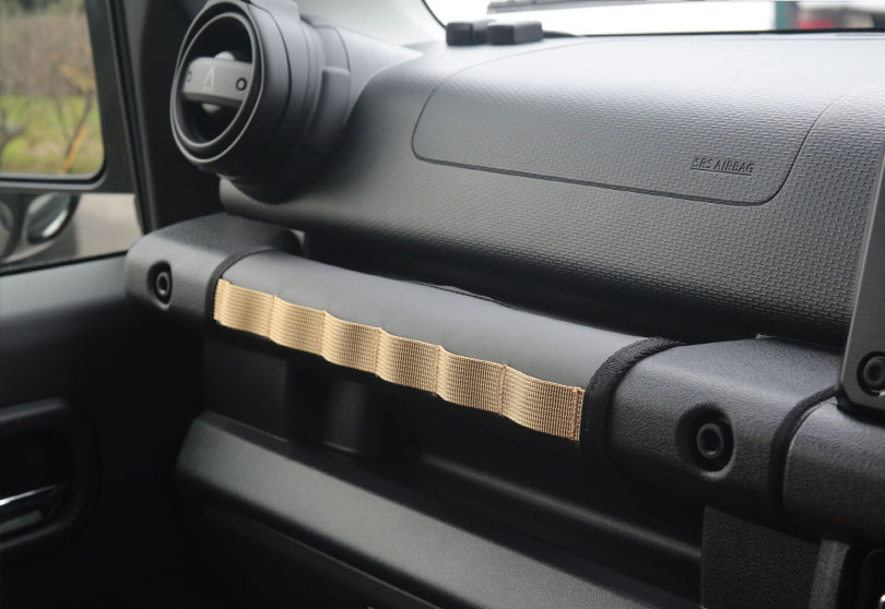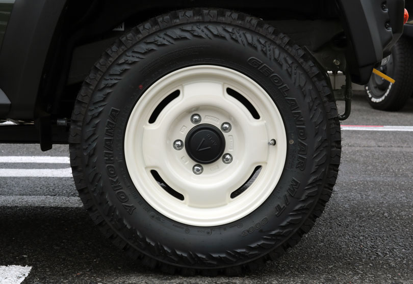 uippiさんのジムニーはジャングルグリーンのボディカラーにコットンホワイトのワイルドボアSR15inch&「ヨコハマタイヤ ジオランダーMT 215/75R15」を装備し、グリーンの車体と相まって、無骨ながらやさしい印象も受けるエクステリアに仕上がりました。また、内装も茶色系のグリップカバーやコーデュロイシートカバーを装備し、インテリアも落ち着いた雰囲気が素敵です!