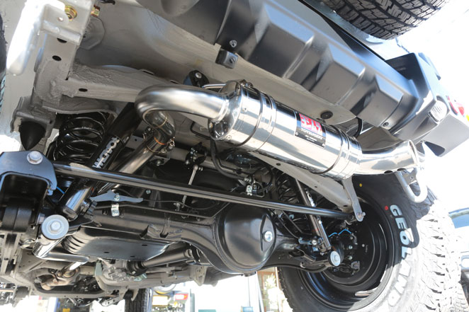 リアバンパーとヨシムラステンレスマフラーのマッチングがばっちりと決まった一台へと架装させて頂きました。