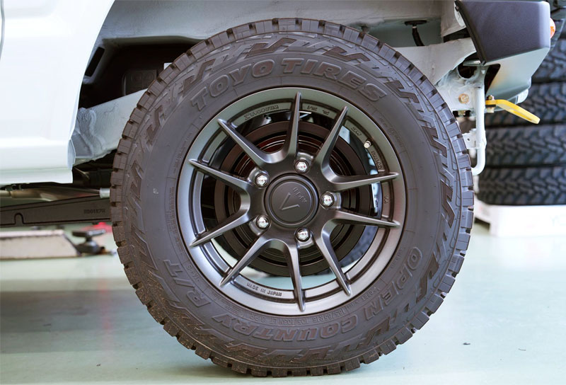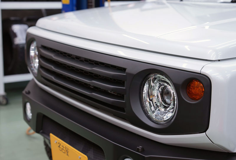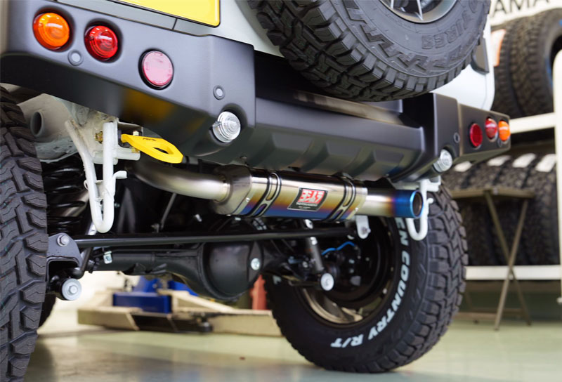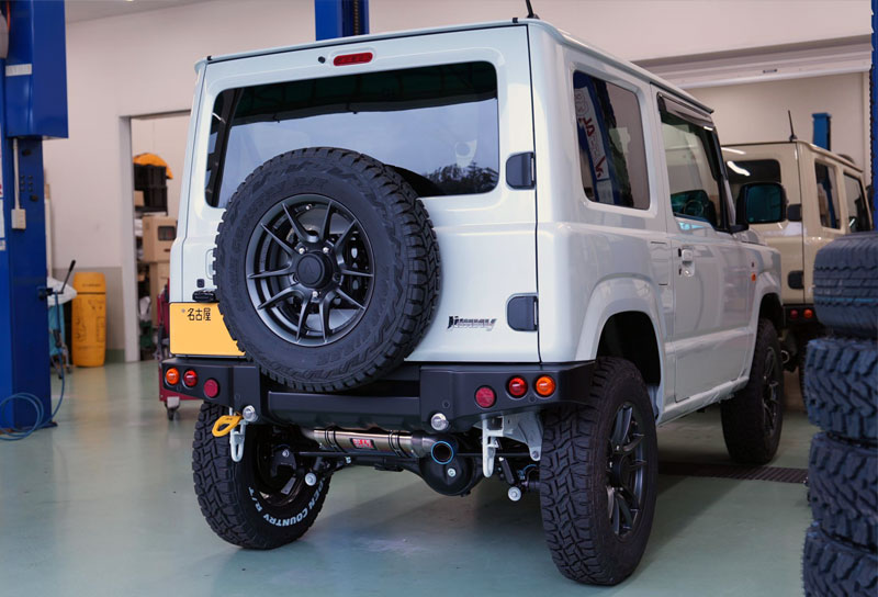 F.T.さんのジムニーはパールホワイトのボディカラーにワイルドボアZガンメタリック&「TOYOタイヤ オープンカントリーR/T 185/85R16」を装備。また、フロントグリルにはタクティカルフロントグリル をチョイス。そしてマフラーには、お拘りのヨシムラチタンサイクロンマフラー(チタンブルー)を装備し、車高も2cmアップにとどめることで、軽量性と走りを重視した仕様になっております。今後はECUチューニングも予定しており、さらに走りに磨きがかかりそうですね。アピオコンプリートカーの素の良さが活かされた一台に仕上がりました。