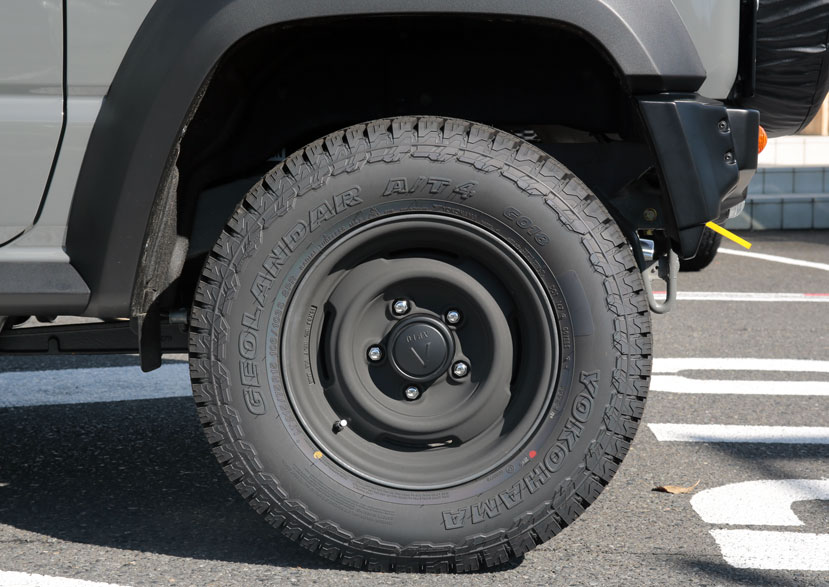 masyaさんのジムニーはミディアムグレーのボディカラーにアピオ新作のワイルドボアSR+15inch&またまた新作の「ヨコハマタイヤ ジオランダーAT4 215/75R15」を装備し、見た目と性能の両立を実現されております。また、ボンネットにさりげなく貼り付けをご希望頂いたグレー色の「Life is Jimmy ステッカー」がワンポイントとなっており、シンプルで品よくまとまりつつも、お洒落な一台に仕上がっております!