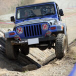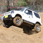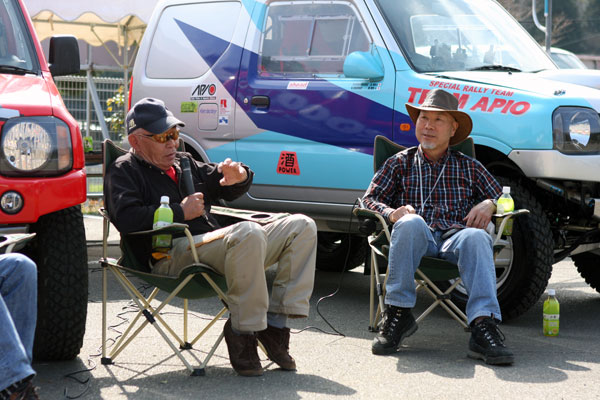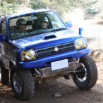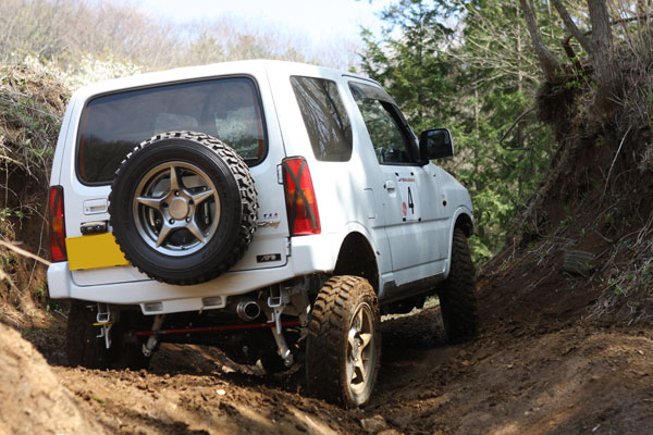 スクールには写真家の桐島ローランドさんもゲスト参加。アピオのJB23でオフロード走行を体験。