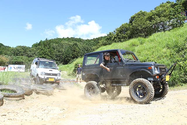 イベント中の気温は34度。暑さは全く関係ないようで…初心者の方からベテランの方までみなさん思い思いにコースを楽しんでいました!なかには、モーグルで車体が2回転半して車体が中破してしまったジムニーも!!
