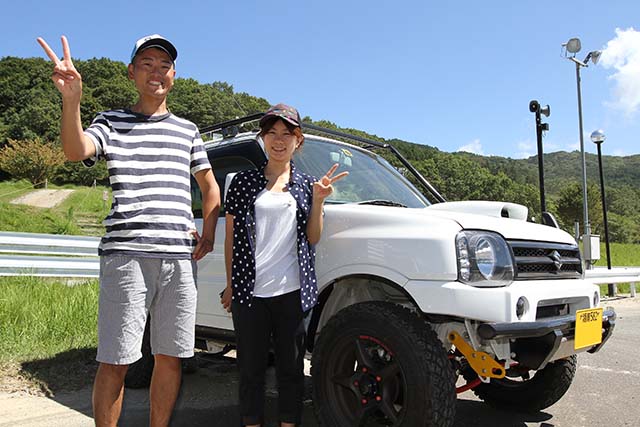 牽引フックにロープを付けて、せいのでアクセル!2回目のトライで脱出しました!その後インタビューさせて頂き、今日走ってみて大会など目指したりしたいですか?と聞いたところ『いや、自転車を積んで車中泊とかして、色んな場所にいってみたいです。今日は楽しっかたです!』と笑顔で答えて頂きました!
