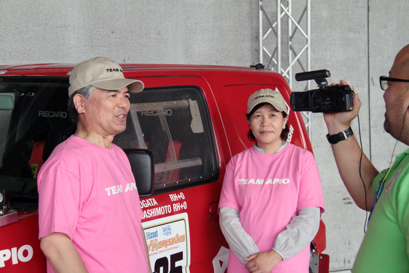 また、4月に本エントリーの書類が届き、5月後半にはエントリーフィーの支払い、愛媛県松山市で車検&船積みが行なわれるということで、橋本ドライバーも慌ただしくなった。しかも、車検直前に、エンジン不調により、リビルトエンジンに載せ換えなければならなくなったので、APIOに急いで依頼して作業してもらい、松山に出発する少し前に換装完了。しかも、マシンのネームステッカーのところに貼る国旗ステッカーがないということで、急遽、神戸の知人が日の丸ステッカーを製作して送ってきてくれるなど、なかなかスリリングな段取りだった。