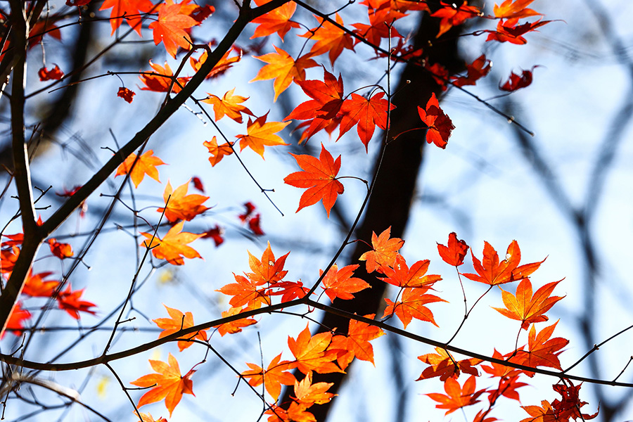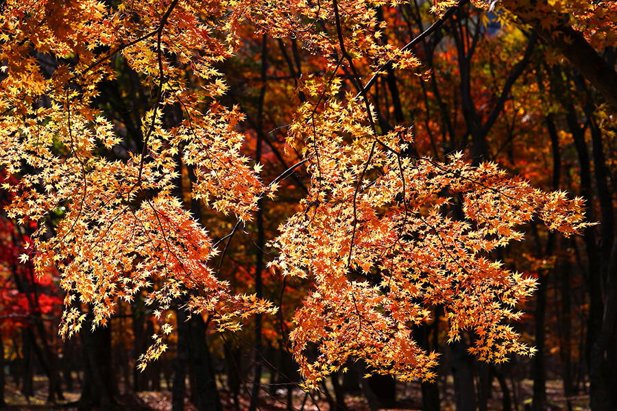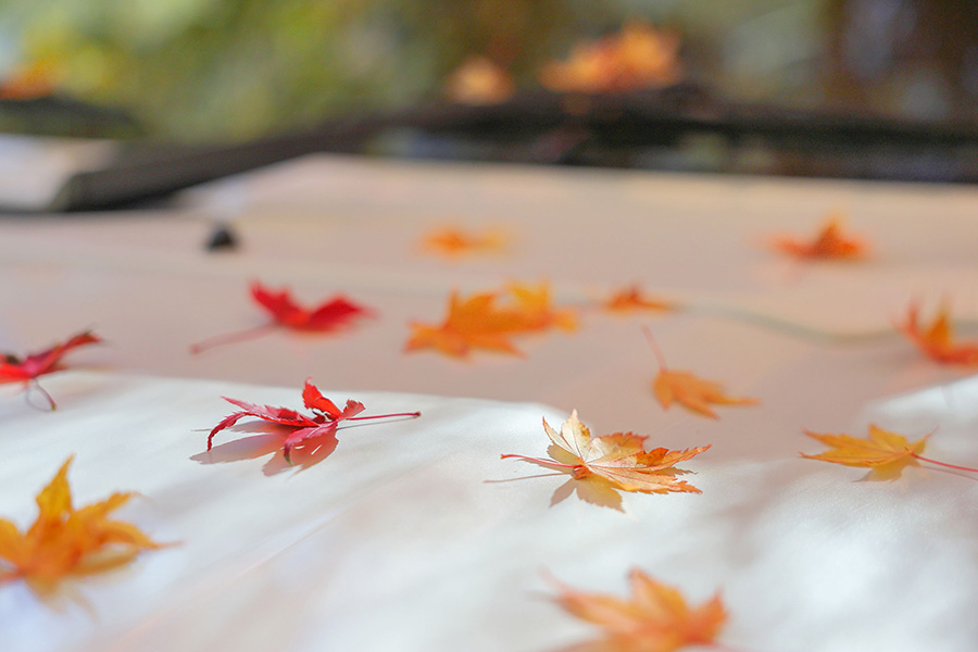 紅葉の美しさは光と一つになることで本来持っている色や形を最大限に輝かせる。光がなければ、その魅力も半減してしまう。