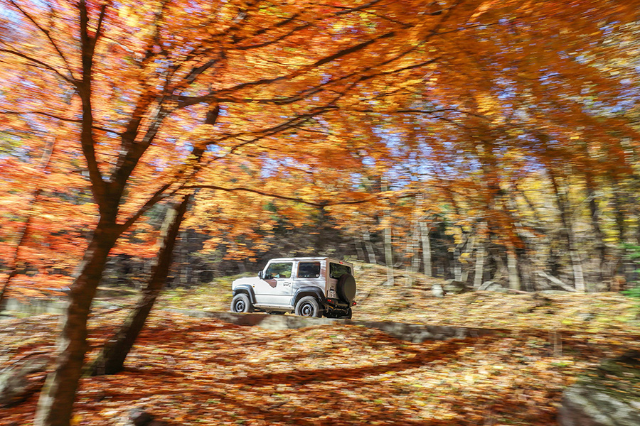 未舗装路の林道を四駆で走るとテンションが上がるのは常だが、紅葉や新緑の季節だと更に面白い。 自然の色と匂いや音などが、五感を刺激してくれるからだろう。このままどこまでも走っていたいと思わせてくれる季節なのだ。