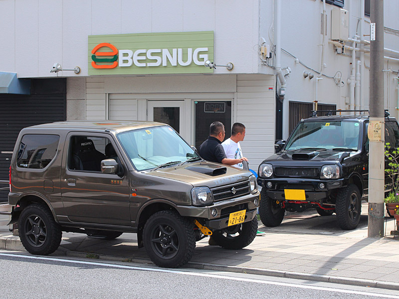 さてそうなると↑上の写真に写り込むジムニー、「これはナニ?」という話である。1台目が「白」で、2台目が「グレー」、ではこの黒い「3台目のジムニー」は一体……というのがこの夏最大のミステリー。