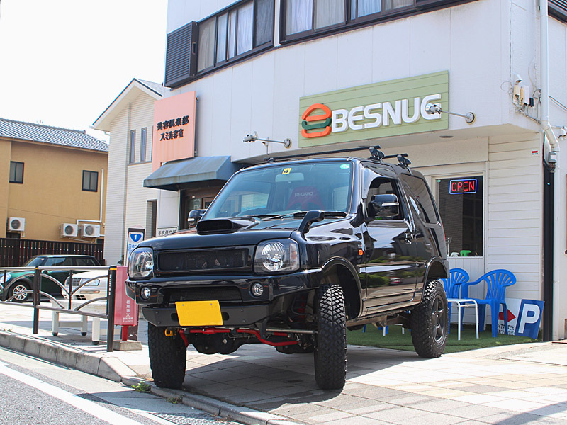 BESNUG・柏原さん所有のジムニーはコンプリートカー「TS4」、車体色はブラック。 柏原さんはBESNUGの店主であるのみならず、日本サーフィン連盟湘南西支部の支部長を務めるサーファーである。奥さんと息子さんは全日本選手権にも出場する腕前。さる7月14日には店の名を冠した大会「BESNUG CUP」を初開催。全国から200名の波乗りが参加した。 そんなサーファー柏原さん。3~4年もの間迷った末に「10年後に後悔しない」ためジムニーを購入した。 サーフボードは屋根には載せずに車内に積むのがサーファーの"流儀"だそうで、助手席を倒せば2枚まで積み込める上、リアから出し入れが出来るので便利と柏原さん。サーファー内での人気も上々で、見れば誰もが「カッコいい」と言って欲しがるそうだ。