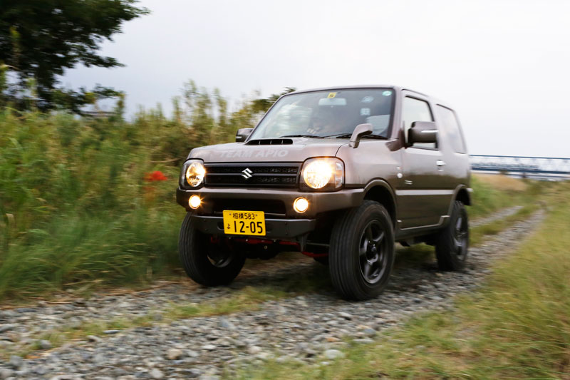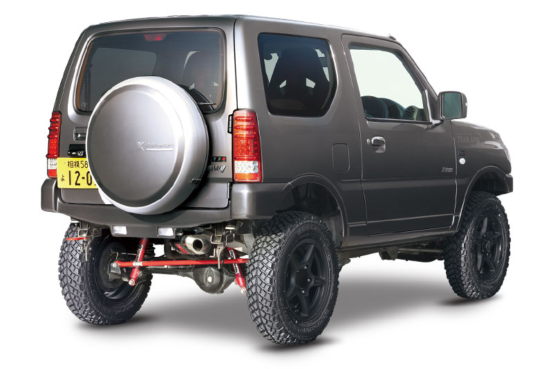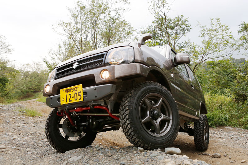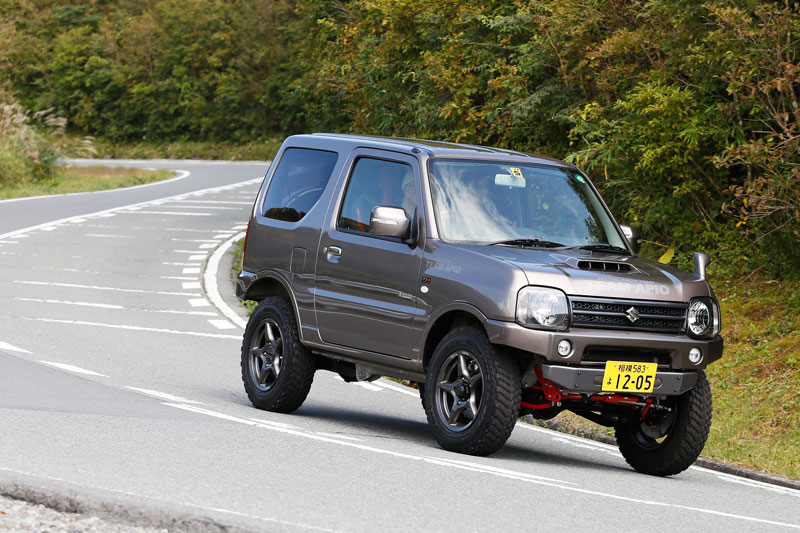 ジムニーJB23をベースに、つよし君RE50コンプリートサスペンションキットを装着したモデル。