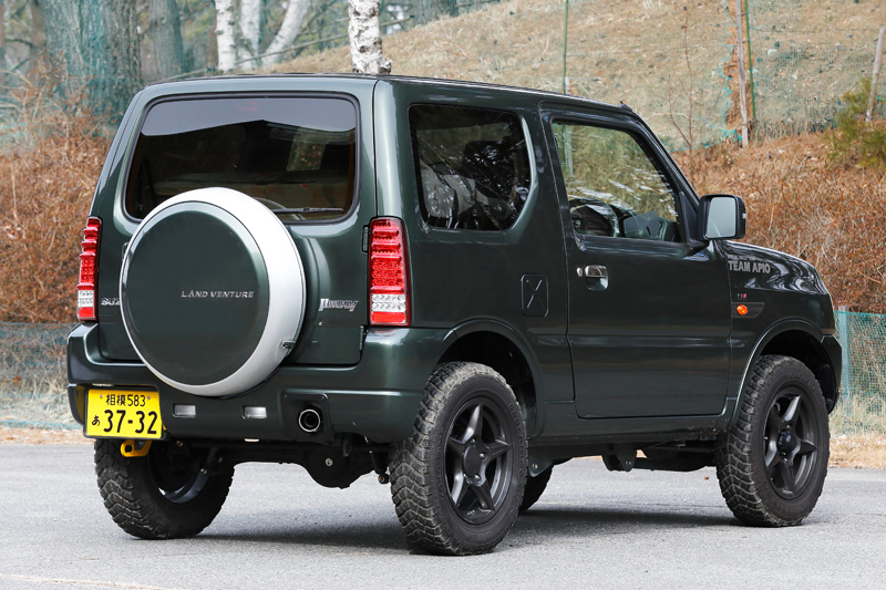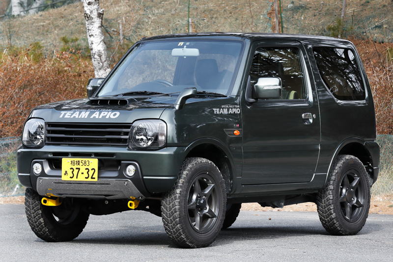 ジムニーJB23をベースに、車高20mmアップの「スーパーつよし君A2000SA-20 N8セット」を装着。WILDBOAR Xアルミホイールにタイヤは175/80R16サイズのジオランダーM/T+をチョイス。