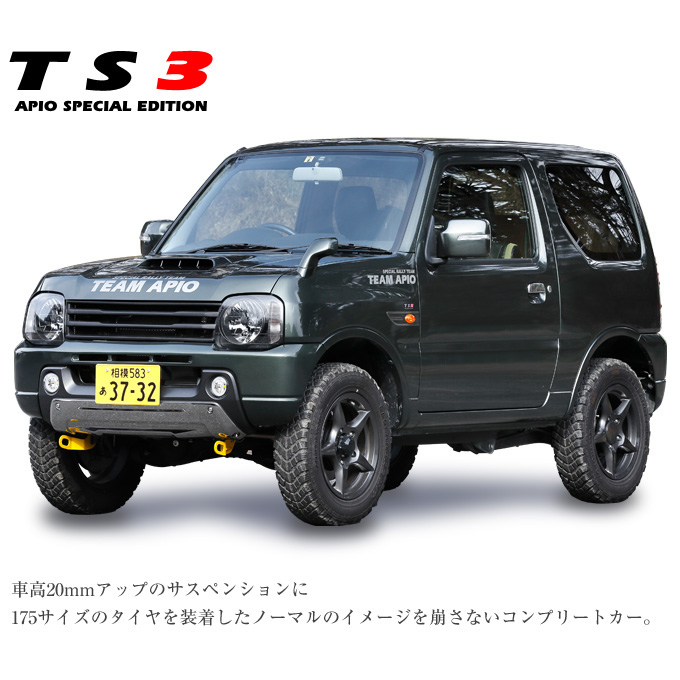 新しくなったTS3はジムニーのイメージを大きく変えずにワンランク上の性能を求めるオーナーにお奨めのコンプリートカー。
