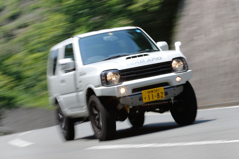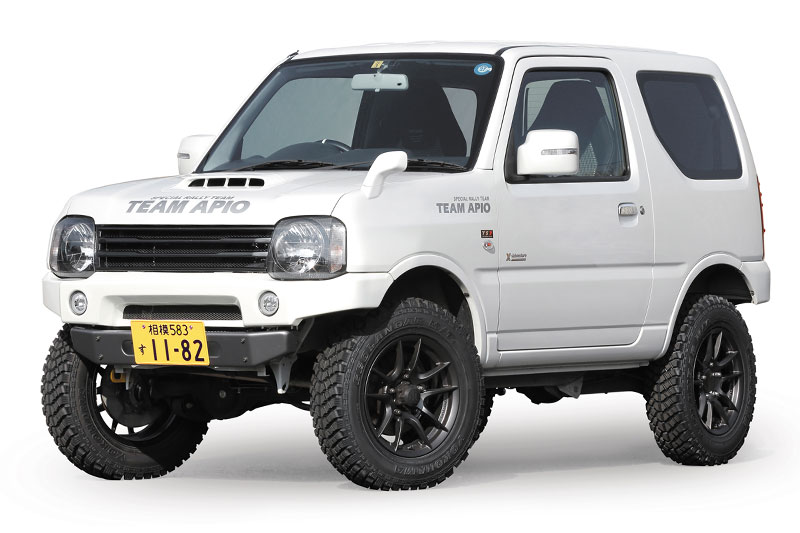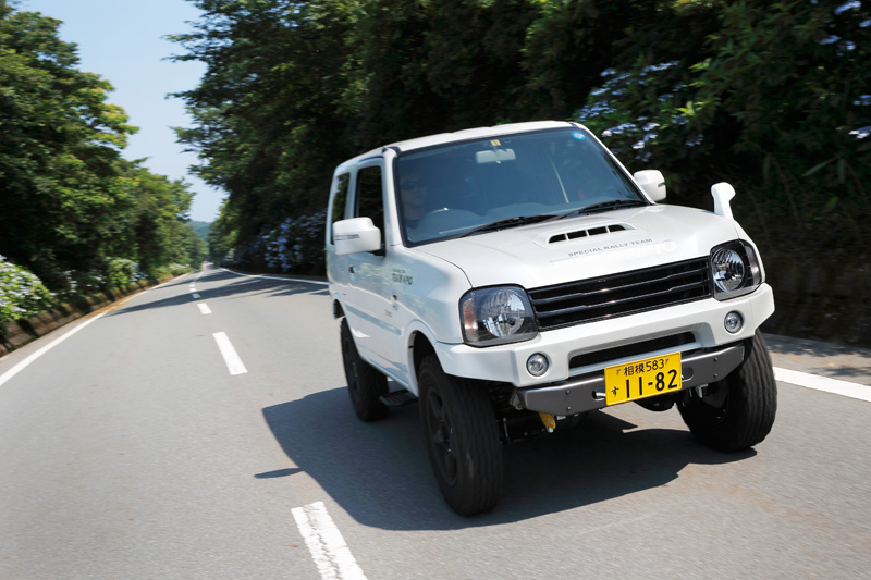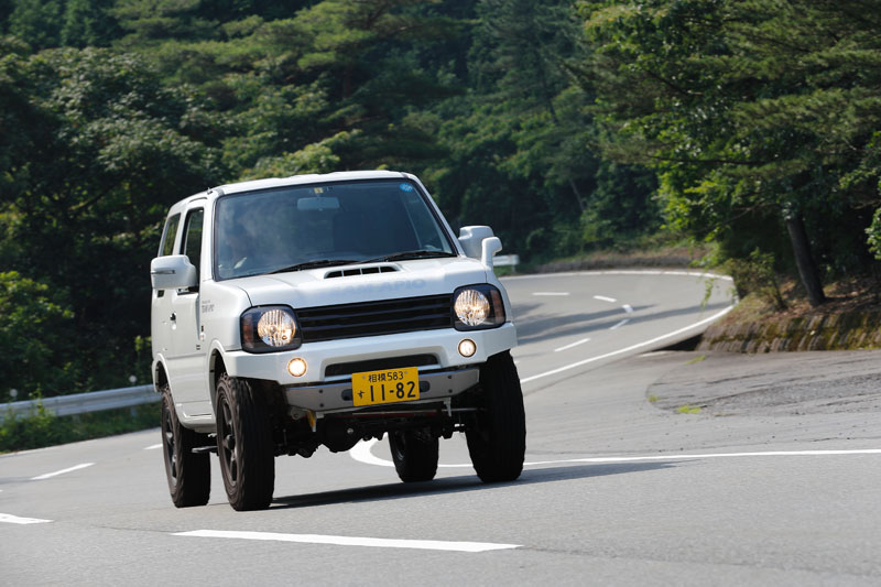 スーパーつよし君銀八安心キットの走りは、ハイウェイやワインディング、ダート走行からシティーユースがターゲット。 車高およそ45mmアップの設計で、スポーティーな走りを実現したジムニーコンプリートカー。