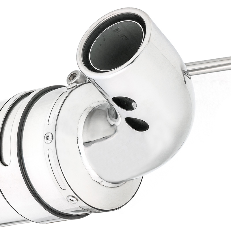 ヨシムラマフラーが1本1本丁寧に仕上げるサイレンサーの総称が「サイクロン」。そのサイクロンシリーズのなかで最もスタンダードなタイプがこのステンレス。ステンレス独特の明るい艶と光沢が目を引きます。