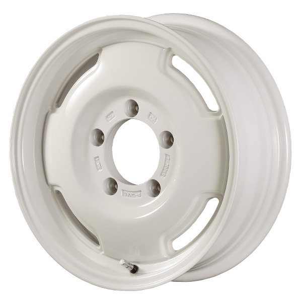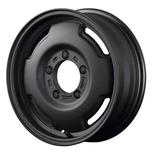 LJやSJジムニーが装着していたスチールホイールを彷彿とさせるレトロデザインのアルミホイール。